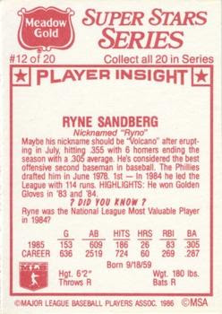 Set two 1986 Meadow Gold blank backs have 16 cards, and there is 1 Cubs player. Rick Sutcliffe was cut from this set